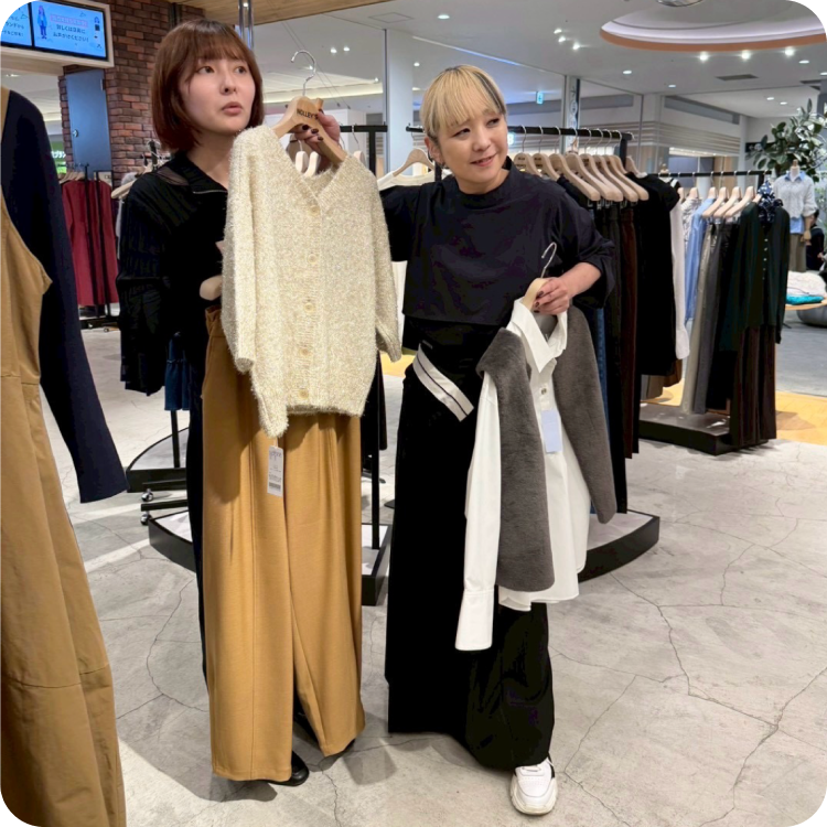 パーソナルカラーや体形・顔立ちにあわせて、お似合いになりそうなアイテムやスタイリングをご提案。